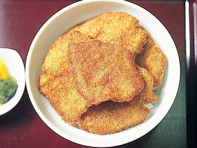 薄手のトンカツを甘辛い醤油ベースのタレに潜らせて、そのままご飯の上にのせる丼。県外の人からは見た目からソースカツ丼と誤解されることもある。醤油ダレはこくがあるのにさっぱりしている。