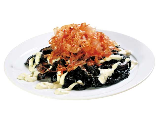 「食で町おこしを!」という市と住民が一体となった熱い思いのグルメ。日本海でとれるイカを使用し、イカスミをからめて真っ黒に仕上げるのが決まりだ。イカと麺との触感の違いを楽しみたい。