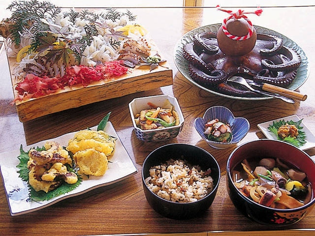 四方を海に囲まれた天草は、魚種も多ければ、漁獲量も高い海の幸の宝庫。なかでも地ダコをまるごと調理したタコステーキは、インパクト大のご当地グルメ。