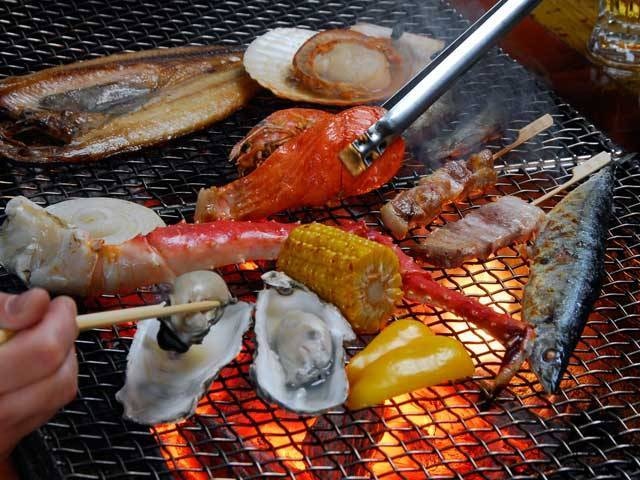 新鮮な魚介を炭火で焼いて食べる釧路発祥の食べ方。脂分がほどよく落ち、魚がもつ本来の旨みを味わうことができる。豪快な雰囲気を味わえるのも魅力の一つ。